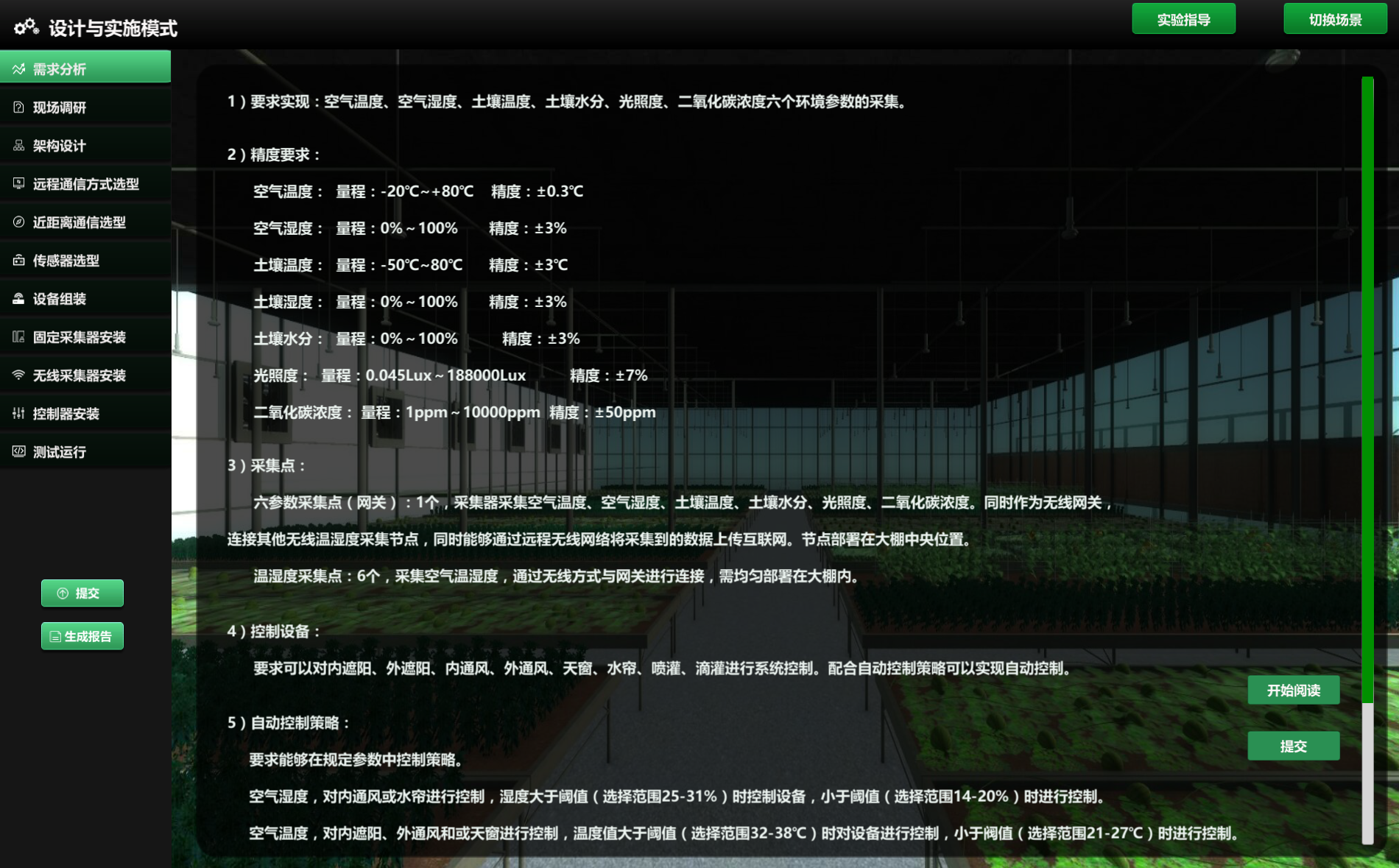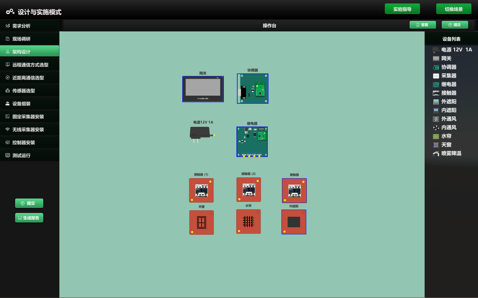 架构设计是通过仿真模型的拖拽来实现智能农业3D物联网硬件环境搭建。让学生更深入的了解智能农业所需主要设备。